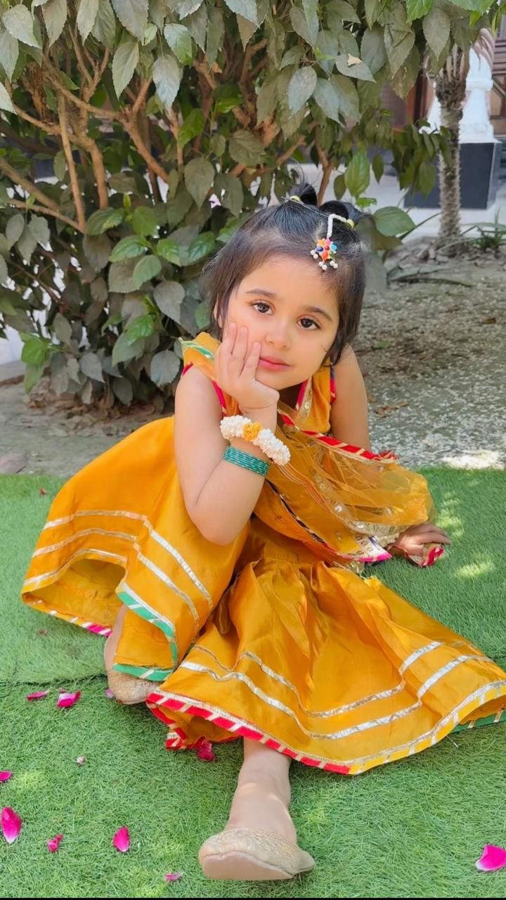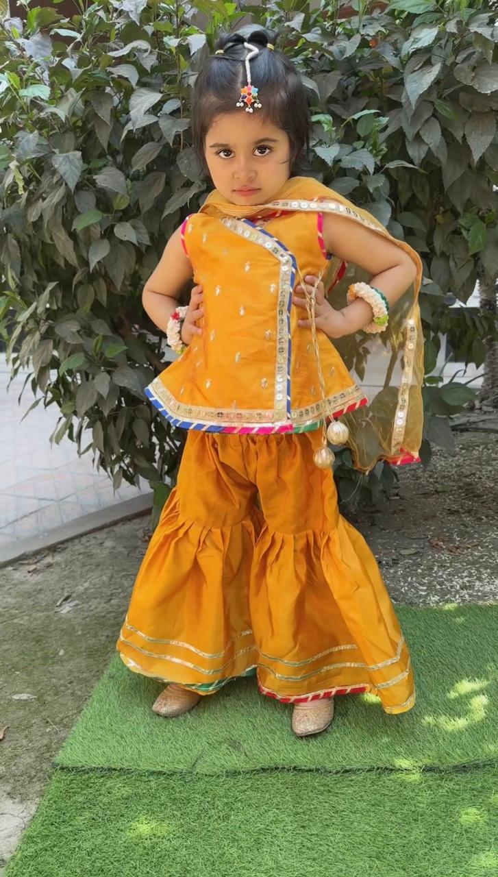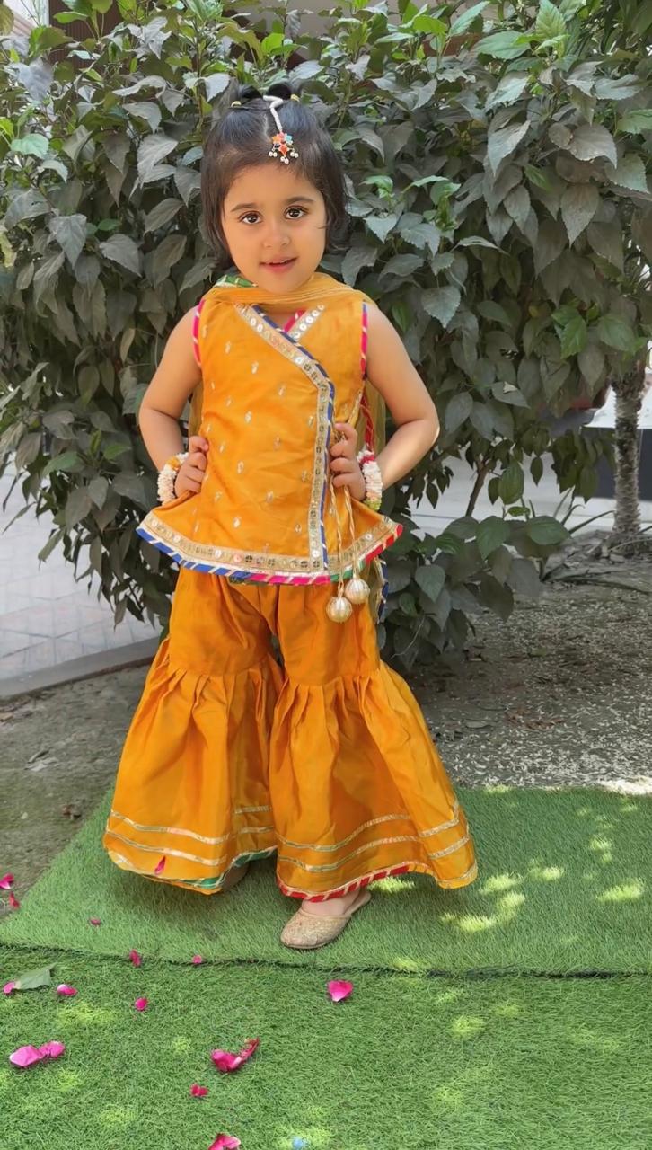 Katan silk ghara fancy shirt embellished with lace and tasel look complete with net dubata